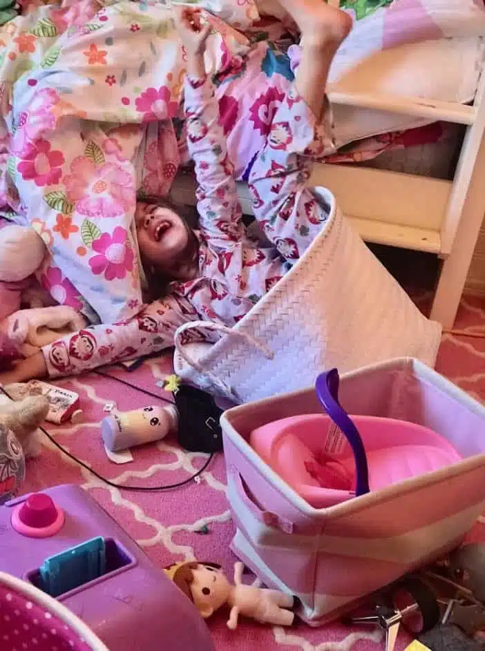 Walking into my daughter’s room, I see her imagination frozen in time: a doll tea party, stuffed animals lovingly tucked into blankets and Lego cities lining the floors. I smile, pause and then…think about doing a much needed clear out while she’s at school.