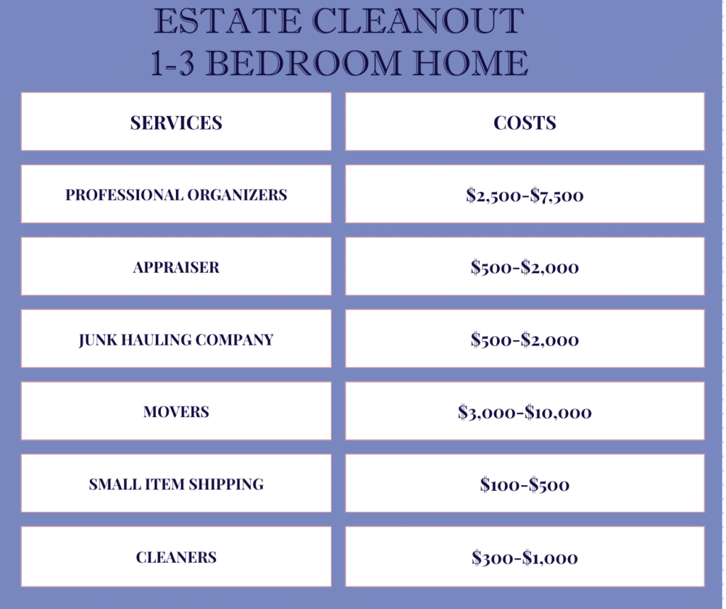 This cost refers to the small items you may want to have shipped from the estate. Things like books, small tchotchkes, or clothing that are going to different family member’s homes that don’t require a moving company. It may be worth getting estimates from different shipping companies such as UPS, FedEx and USPS.