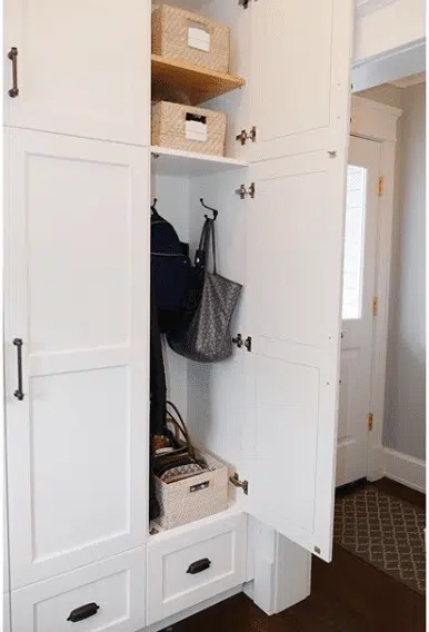 Even hallways and entryways can be transformed into functional mudrooms. Install decorative hooks and a stylish bench and you’ll have an instant upgrade! Alternately, you can invest in a piece of sturdy furniture to give you the organization you need.