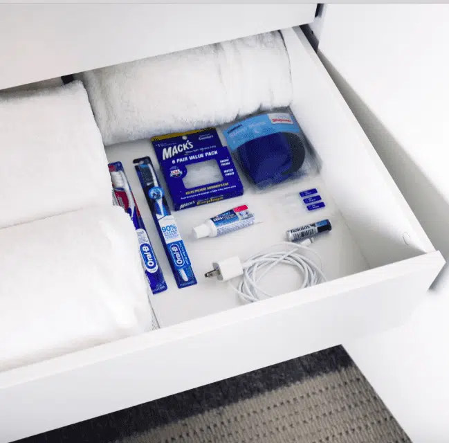 As we all know, the little things can often be forgotten. How many times have you gotten to your destination only to realize you didn’t pack an essential item? I have a drawer that I keep stocked with accessories for my guests.