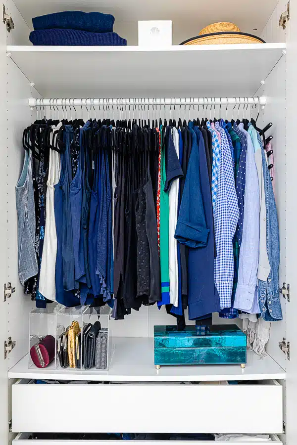 Instead of organizing item-by-item immediately, organize by zones so your closet flows logically.