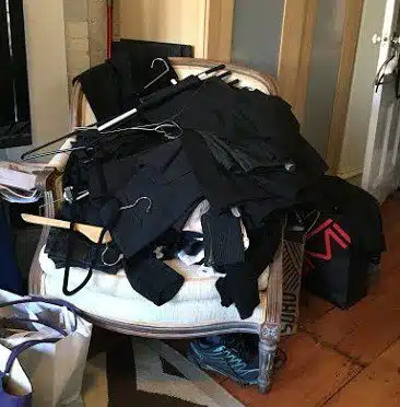 This isn’t part of the official D&D method, but Kate and Ann fully endorse this moment of ad-libbing. After I sorted every single item of clothing I owned, I restocked my closet with the “keep” items and returned to the sad mountain of Damaged/Enough Already/Uncomfortable clothes. Here, I focused a ruthless eye on every single item and asked myself, “Could the damage be fixed? Can I tailor these pair of pants to make them more comfortable? Will giving this tunic a waist make feel better while wearing it?” Again, all of these items had been tried on so I could assess if fixing them would be realistic. Anything that could be adjusted for a reasonable price at my tailor, I folded into a shopping bag and set by the door to bring to him. The tailoring, after all, is cheaper than buying a new pair entirely, and now I have a whole rack of new/old clothes that fit me perfectly!